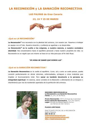 ¡De nuevo, vuelvo a Gran Canaria para dar SESIONES INDIVIDUALES de Reconexión® y Sanación Reconectiva!
